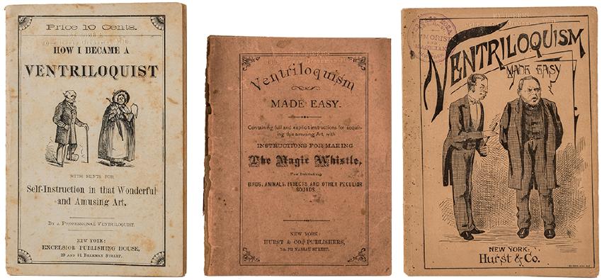 [Ventriloquism] Three Antiquarian Volumes. Including Ventriloquism Made Easy (New York: Hurst & Co., ca. 1870s; two edns.) and How I Became a Ventriloquist (New York: Excelsior, ca. 1880s). Pictorial or printed wraps. 12mo. Very good.