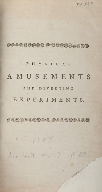 Pinetti, Giuseppe. Physical Amusements and Diverting Experiments. London, 1784. Modern quarter leather, gilt spine, with marbled sides. 8vo. Frontispiece and title page in facsimile only, half-title page torn in corner, minor scattered soiling. Toole Stott 564.