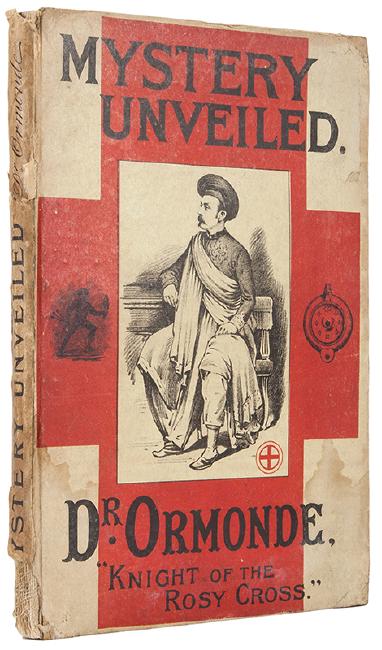 Ormonde, Dr. Mystery Unveiled. Edinburgh: Author [?], 1898. Publisher's pictorial boards. Portrait frontispiece, illustrated. 8vo. Dampstained; chipped and worn spine; fair. Scarce. Clearly an unauthorized imitation of Samri Baldwin's The Secrets of Mahatmaland Explained. Contents include discussions of thought reading, lightning calculations, and facts in sacred history. Several poor imitations of Baldwin's publicity material are reproduced on the final leaves of the book, while other illustrations have been lifted from various contemporary publications on related subjects.