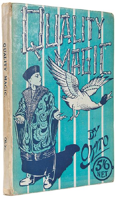 Okito (Theodore Bamberg). Quality Magic. London: Will Goldston Ltd., [1922]. Pictorial boards. Frontispiece. Illustrated. Small 8vo. Inscribed and signed on the title page by Okito. Spine chipped and rubbed, else good.