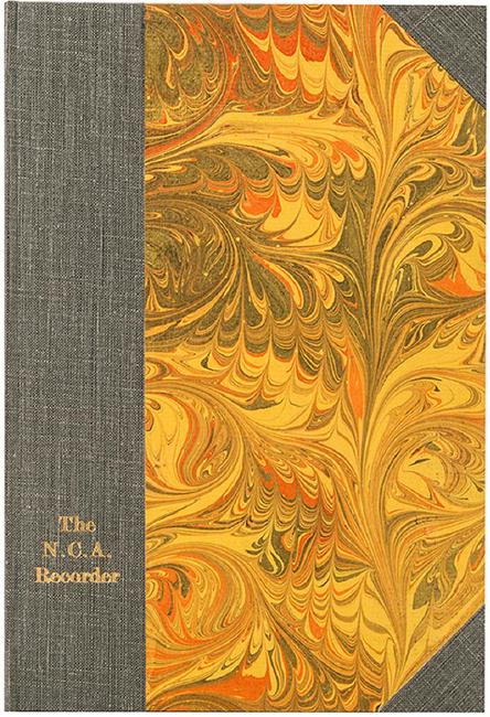 N. C.A. Recorder. Charles Hagen. Monthly. NV N# (Jul. 1913)—NV N# (n.d.). Complete file, p. 1—24. Three-quarter cloth volume, gilt title, with marbled sides. Alfredson/Daily 5055.