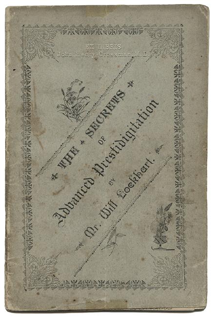 Lockhart, Will. The Secrets of Advanced Prestidigitation. Plaistow: W. Bull, 1894. Decorative printed wraps. 8vo. p. [2] 3—29 (pp. 13—29 being “Abridged Catalogue of Novelties in Conjuring Tricks and Magical Apparatus by Lockhart & Co.”). Tipped-in letter from Lockhart to an inquirer discussing his “arrangements with a gentleman, a mechanic who has for the past 20 years been in the employ of a London Conjuring Maker now deceased”.