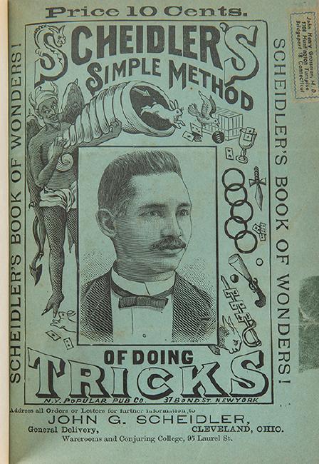 J. G. Schiedler Catalog and Supplement. Cleveland, ca. 1910s. Original blue wraps bound in brown boards with gilt stamped spine. Including the smaller and profusely illustrated catalog, “Up-To-Date Book of Wonders”. Pages browned; writing on FFEP; very good.