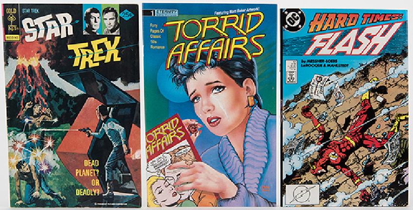 Large Lot of 375 Bronze and Modern Age Comic Books. Various publishers, bulk 1980s (encompassing 1960s—90s). A potpourri of comic series and a few graphic novels, mostly DC, but also including Marvel, Dell, Disney, Viz, and other publishers, including G.I. Joe, Shazam!, New Mutants, The ‘Nam, Semper Fi, Excalibur, X-Factor, Justice League, Batman, Silverblade, Whisper, Uncle Scrooge, Donald Duck, Sandman, Akira, Pineapple Army, Black Orchid, Justy, and many others. Includes duplication (as many as 10 copies of some titles). Full inventory available on request. Most bagged and boarded. Condition generally FN or better.