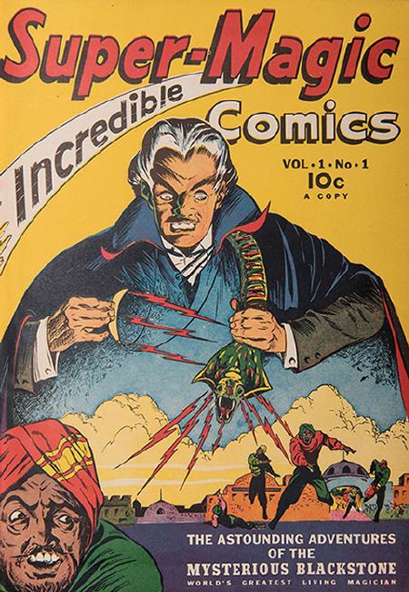 Gibson, Walter. Super-Magic / Super-Magician. New York: Street & Smith, May 1941-July 1942. Volume 1, nos. 1-6. 8vo. Green cloth. Featuring Blackstone the Magician. First issue was "Super Magic," with subsequent issues titled "Super-Magician." From the personal library of Walter Gibson.