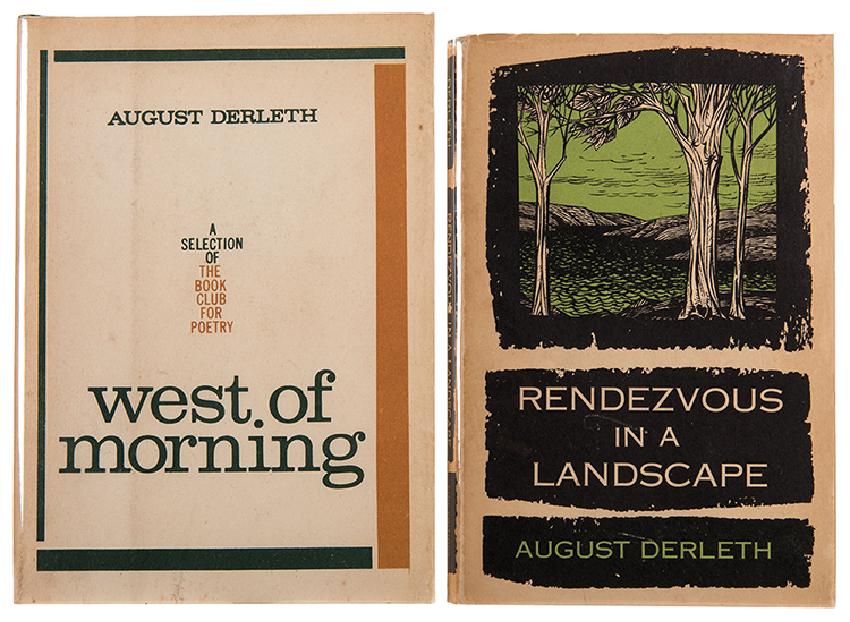Derleth, August. Two Inscribed Books. Including West of Morning (Francestown, NH: The Golden Quill Press, 1960); and Rendezvous in a Landscape (New York: The Fine Editions Press, 1952). Publisher’s cloth. Dust jackets. 8vo.