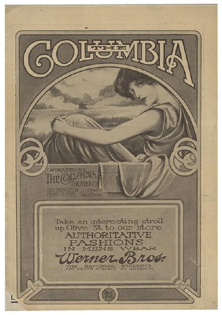 Houdini, Harry (Ehrich Weiss). Columbia Theater Program. St. Louis, Jan. 27, 1908. Twenty-page program, Houdini billed as the “Original Jail Breaker and Wonder Worker of the World”, presenting an escape from a water-filled galvanized tank.