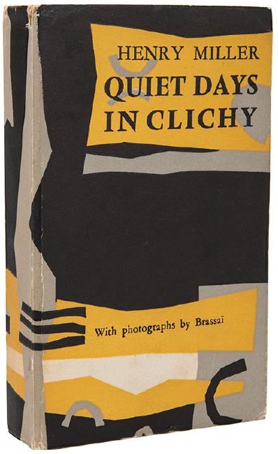 Miller, Henry. Quiet Days in Clichy. Paris: The Olympia Press, 1958. Second edition. With fifteen photographic illustrations by Brassai and one photomontage. Original printed wraps. Small 8vo. Near fine.