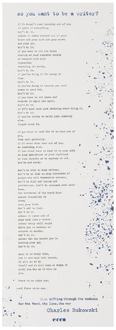 Bukowski, Charles. So You Want to Be A Writer? New York: Ecco Press, 2003. Broadside of the poem from "sifting through the madness for the Word, the line, the way." 20 x 7".