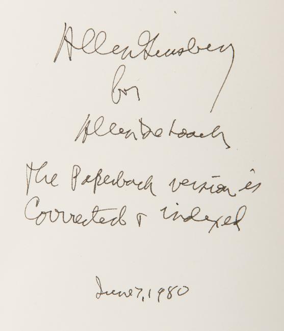 Ginsberg, Allen. Journals. Early Fifties Early Sixties. Edited by Gordon Ball. New York: Grove Press, 1977. First edition, first printing. Inscribed by Ginsberg. Black cloth. 8vo. Waterstain to lower edge of first and last few pages.