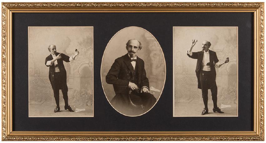 Powell, Frederick Eugene. Six Cabinet Photos. Los Angeles: Marceau, ca. 1920. Six cabinet-size images of Powell in parlor, two depicting him with billiard balls, the others showing him seated or standing in three-quarter length views. Two gilt wooden frames, each with three pieces. 10 x 19 ½”. Not examined out of frame.