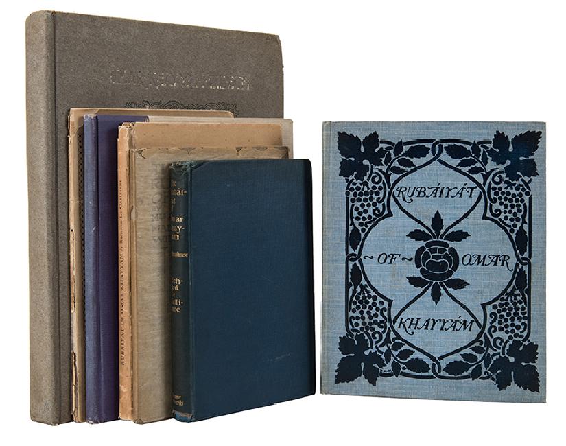 [Omar Khayyam] Five editions of the Rubaiyat. Including the De La More Press edition of 1901, Richard de Galliene interpretations from 1901 and 1907 and Sufi Interpretations of the Quatrains of Omar Khayyam and Fitzgerald by CHA Bjerregaard, 1902. Together with two other related works (7 total).