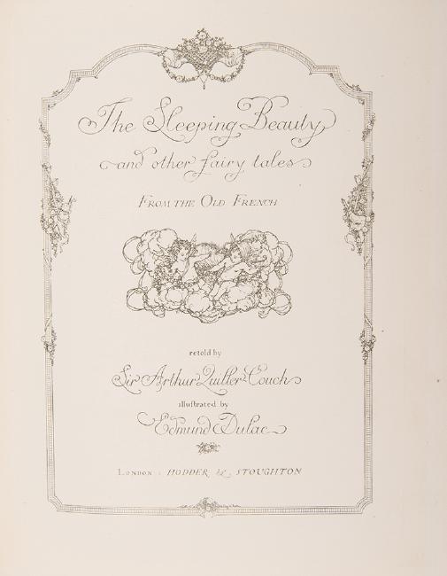 (Dulac, Edmund) Quiller-Couch, Arthur (retold by). The Sleeping Beauty and Other Fairy Tales. London: Hodder & Stoughton, (1910). Limited edition, number 283 of 1000 copies signed by Dulac. Tipped-in plates throughout. Finely rebound in full-tooled leather with gilt decorations on spine in the style of the original binding. Fine condition.