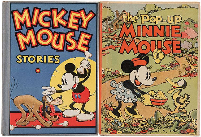 [Pop-Up] Disney Studios. The Pop-Up Minnie Mouse. New York: Blue Ribbon Books, 1933. 8vo. Publisher’s illustrated boards. Complete with three color pop-ups. Together with: Mickey Mouse Stories. Philadelphia, 1934.