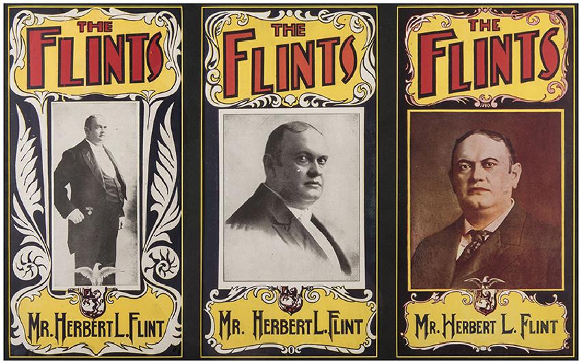 Flint, Herbert L. Triptych of Window Cards. N.p., ca. 1890s. Set of three window cards advertising the hypnotist, with illustrated detailing around his photographs. Framed and matted. 30 x 21” overall. A-.