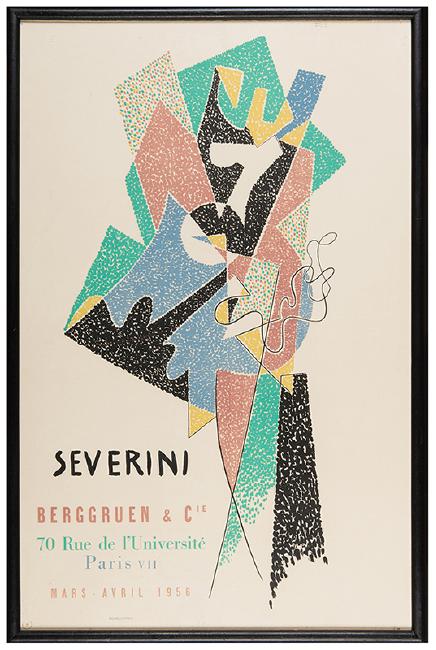 [Exhibition Posters. Mourlot] A Pair of Posters for Galerie Berggruen. Paris, 1956. Artists including Magnelli and Severini. Lithograph on paper. Each 25" x 16". Framed.