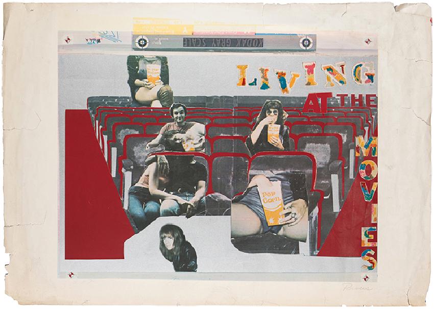 Rivers, Larry. Living at the Movies. Lithograph in colors, signed in pencil (lower right). A few tears to the margins; some wrinkling and toning to sheet. Size of sheet 24 1/2 x 35".