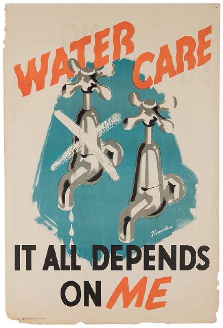 [WWI] A Lot of 9 WWI-era Posters Encouraging Families to Conserve Water and Laundry. Printed for the HM Stationary Office by F.S. Fair condition, with some tears. Size of largest 29 x 19".