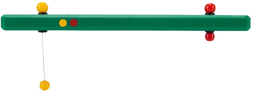 Devil Stick. Holland: Eddy Taytelbaum, 1970s. A green plastic stick with beaded strings running through its ends. As the long cord at one end is pulled the other becomes short, and vice versa, until the finale when the stick is pulled apart to show no connection between the cords. 8” long. Fine.