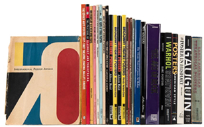 [Poster Art] Lot of 23 Volumes. 1950s—80s. Including books on magic, circus, Buffalo Bill, theatre, bicycles, Soviet, Art Nouveau, and others. Folio or 4to. Most cloth with dust-wrappers. Condition generally very good.