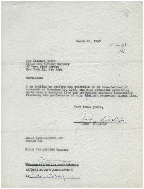 [Film] Three signed contracts. Moss Hart (Samuel Goldwyn Productions, June 19, 1951, for screenplay "Hans Christian Andersen"), Helen Kane (Metro-Goldwyn-Mayer Productions, June 21, 1950, for use of the tracks "Three Little Words" and "I Wanna Be Loved By You") and Judy Holliday (The Theatre Guild, March 28, 1958, for the extension of her RUN-OF-THE-PLAY contract, for an unknown production).