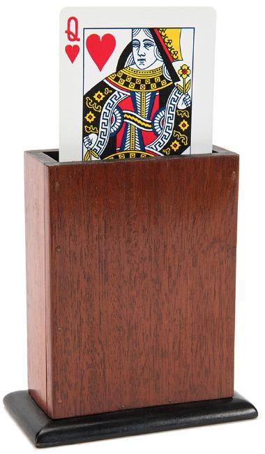 Thayer’s Latest Rising Cards. Pasadena: F.G. Thayer, ca. 1913. Three cards are chosen. Spectators examine a mahogany box and place the pack inside. The selections then rise from the box one at a time. With original instructions. 4 ¼” high. Fine. Scarce.