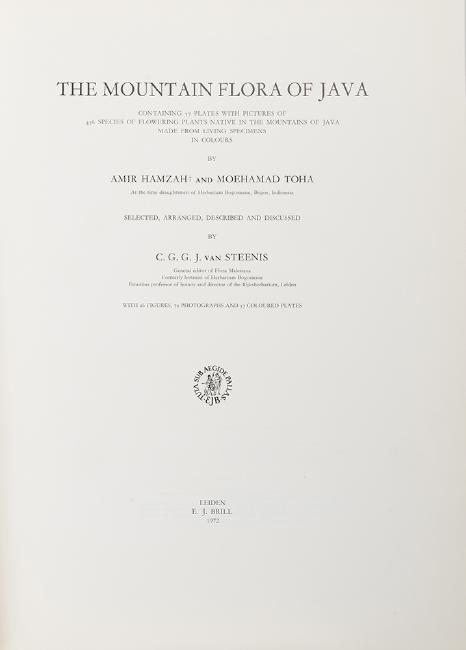 Steenis, C. G.J. van. The Mountain Flora of Java. Leiden: E.J. Brill, 1972. First edition. 57 color plates by M. Hamzah and M. Thoa. Publisher’s green cloth. Folio.