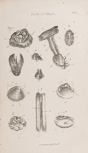 Poe, Edgar A. The Conchologist's First book. A System of Testaceous Malacology… Philadelphia: Haswell, Barrington and Haswell, 1840. Second edition. 12 black and white plates of shells. Publisher's quarter green morocco over matching printed green boards. 12mo. Boards rubbing with some loss at spine ends and edges, light brownspotting, otherwise very good internally.
