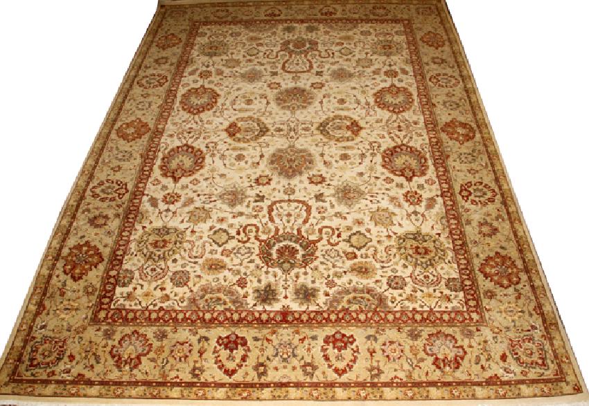 TABRIZ PERSIAN ORIENTAL RUG, W 10' 2", L 14':Ivory field, hand woven.