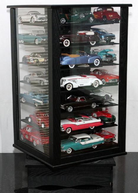 REPLICA MODEL CAR COLLECTION; ENCASED, H 29 3/4", W 15 1/2":Includes 28 model antique and vintage car replicas. Case with drawer.