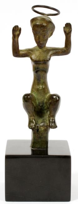 MARSHALL FREDERICKS, BRONZE H 7 3/4" DETAIL FROM SAINTS AND SINNERS:Signed on child's back. Height of bronze only is 7 3/4". Mounted on black marble base which adds 2.5". Green patina.