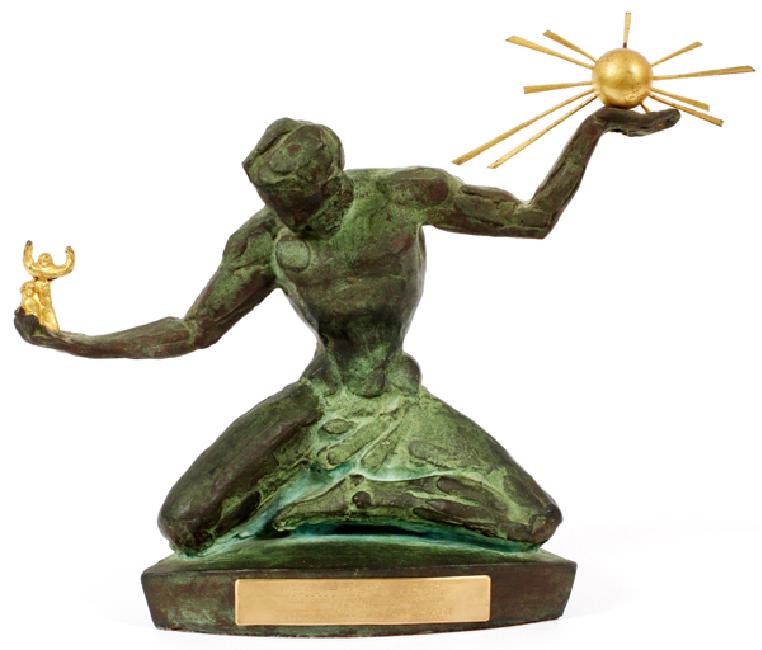 MARSHALL M. FREDERICKS (AMERICAN, 1908-1998), BRONZE SCULPTURE, SKETCH MODEL,1958, H 10 1/2", W 13", D 5", SPIRIT OF DETROIT:*A portion of the proceeds of this sale will be donated to grassroots community economic development groups in Detroit. Original Rough sketch model, 1958, cast by the artist to commemorate the unveiling of the "Spirit of Detroit", presented to Frederick C. Matthaei, Sr., "By a Grateful City", October 13, 1960 (see photo details), signed. Estate of Frederick C. and Malora Matthaei.