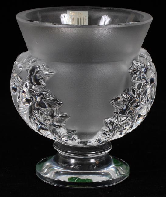 LALIQUE CRYSTAL VASE H 4 3/4:Signed in script.