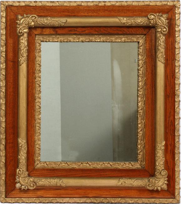 CONTEMPORARY FRAMED MIRROR, H 33", W 29":An assembled gilt wood and oak frame mirror.