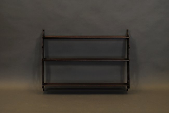 Mahogany hanging wall shelf, late 19th c., together with another shelf and a tool carrier. Read more…