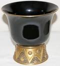 each in the form of a gourd, the upper section flanked by a pair of loop form handles, the body densely painted and applied with gourds and entwined leafy vines decoration, all reserved a gilt ground with gilt highlighted foliate scroll pattern, bearing a four-character Qianlong mark within a square, having a gilt metal stopper worked to show flower head. Height 2 1/2 inches.