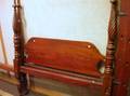 Pair of Louis XVI-style Chenets, France, 19th century, urns with flame finials, the supports decorated with flowers and foliate festoons, gallery-style cross brace, ht. 12 3/4, dp. 12 1/2 in.